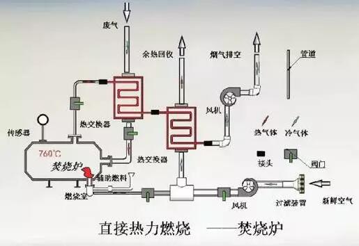 間壁式熱氧化是用列管或板式間壁換熱器來捕獲凈化排放氣的熱量,它可以回收40%-70%的熱能,并用回收的熱量來預(yù)熱進(jìn)入氧化系統(tǒng)的有機(jī)廢氣。預(yù)熱后的廢氣再通過火焰來達(dá)到氧化溫度,進(jìn)行凈化,間壁換熱的缺點(diǎn)是熱回收效率不高。